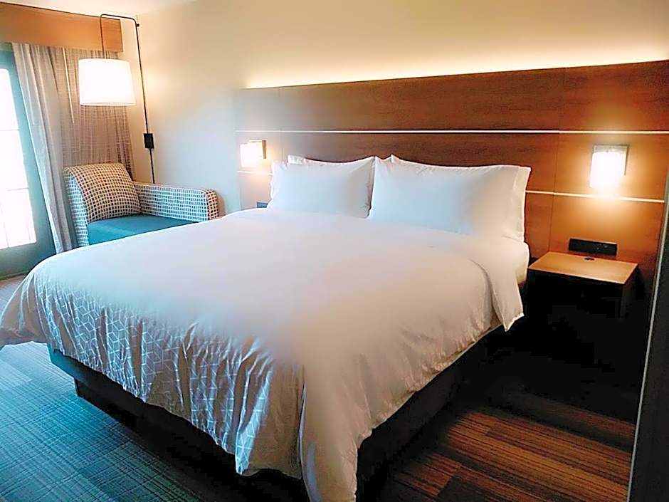 This hearing-accessible room offers a work desk with an ergonomic chair, a microwave and a small refrigerator. A lounge chair, an HD TV and a coffee brewer are also provided.
